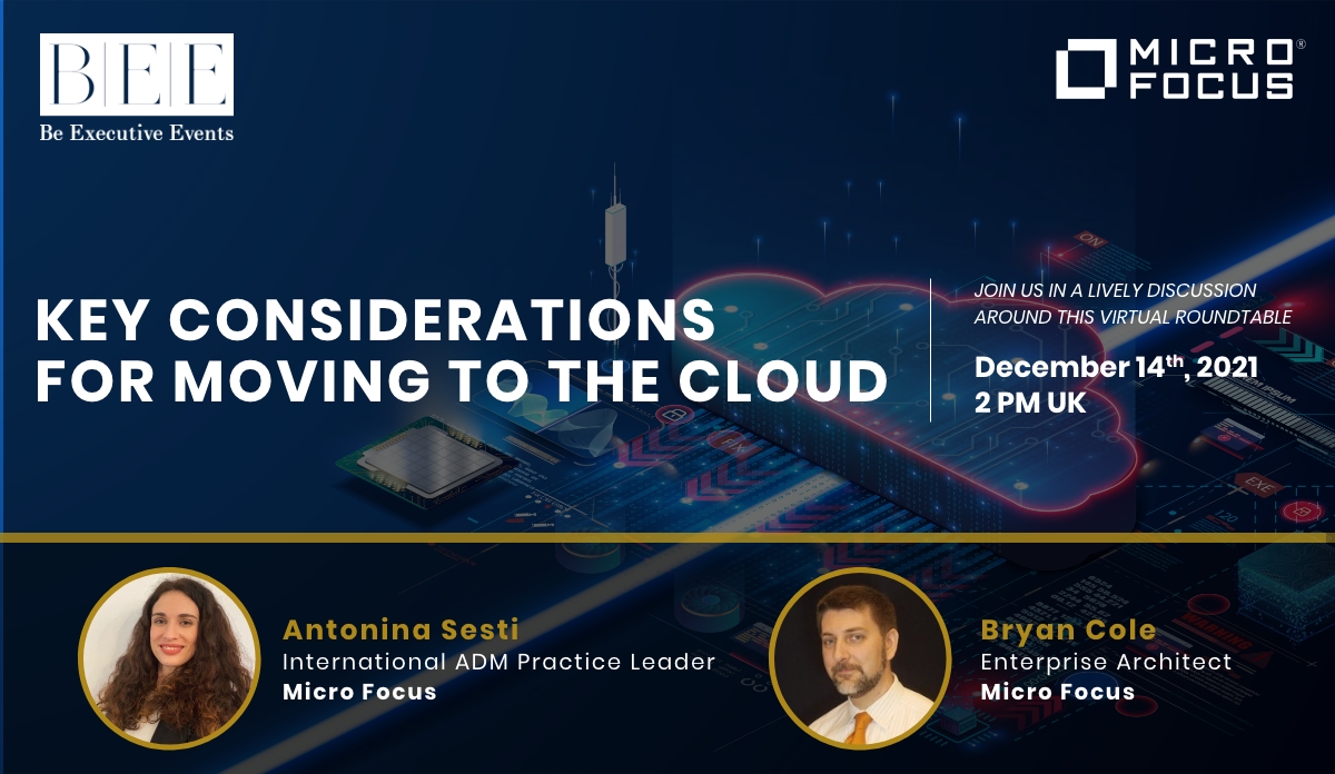 JOIN US for senior-level conversations, exchanging ideas and networking at Be Exclusive Events’ & Micro Focus intimate, Executive Virtual Event – Key Considerations for Moving to the Cloud.